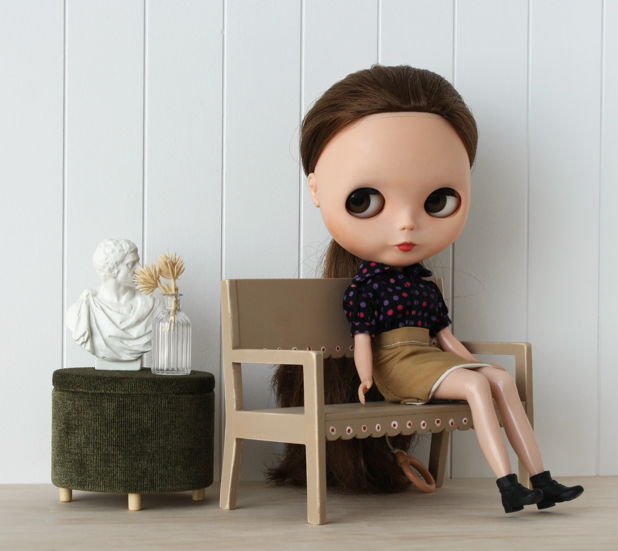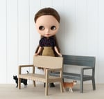 Hand-Painted Low Wooden Bench – 1:6 Scale Miniature Furniture for Blythe Size Dolls